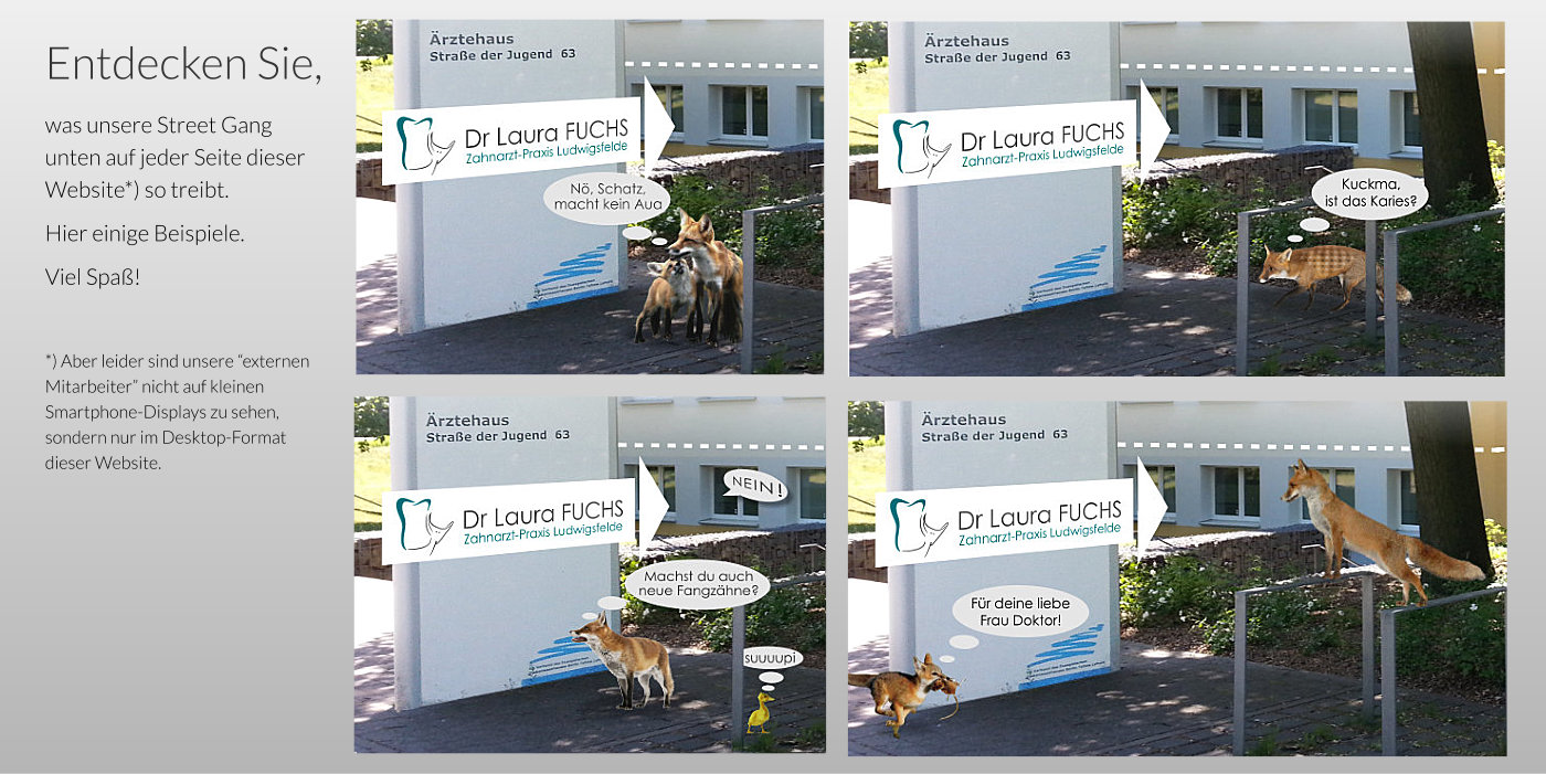 Wir begrüßen Sie herzlich in der Zahnarztpraxis Dr. Laura Fuchs in Ludwigsfelde und laden Sie hier zu einem visuellen Rundgang ein.
