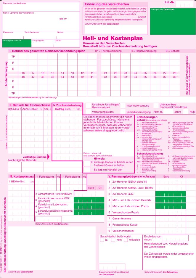 Mit einer Zahnersatzbehandlung beginnt meine Praxis erst, wenn der Heil- und Kostenplan von der Krankenkasse genehmigt wurde, denn sonst könnten Sie Ihren Anspruch auf den Zuschuss verlieren.
